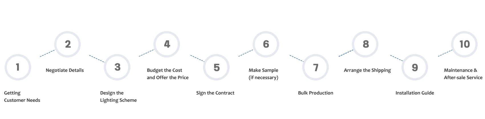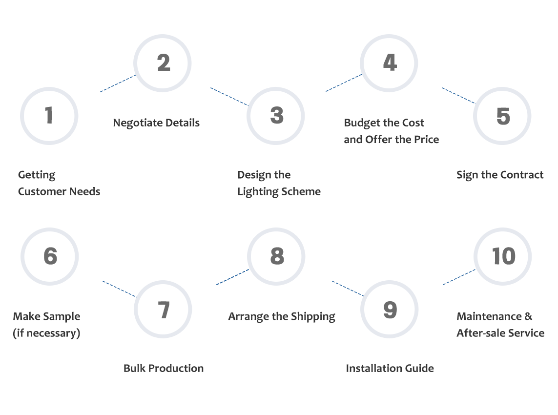 The detailed process of one-stop customized service includes the whole process of demand communication, scheme design, production and after-sales service.